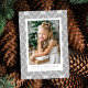 Festivt helgdag-kort med lodräts foto inramat i vitt, inställt mot grått och vit nordisk snöflingermönster. Anpassa det här charmerande julkortet med din anpassningsbar hälsning och namn i matchande grått-brev. Kortets baksida ger utrymme för ditt personliga helgdag-meddelande.