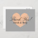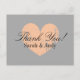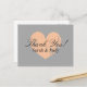 Elegant grått och persiko-bröllop tack för vykort. Romantisk utformning med symbolen vintage västerut kärlek. Perfekt för sommarstrandtema och land chic giftermål. Elegantens skripttypografi utformar personlig med namn av brid- och groompar/gifta nygifta. Söt grått- och persiko-kort för tack till gäster, brudar, maid of honor, vänner, familj osv. Anpassningsbarnas tackmeddelande på baksidan. Tack för att du är min brudgumm.
