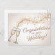 En elegant och festlig bild med en vacker gratulationskortdesign. Den visar två champagneglas som skålar, åtföljda av en festlig ström av gyllene glitter och ömtåliga kronblad. Texten "Grattis på ert bröllop!" är skriven med en graciös, flödande skrift.