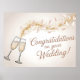 En elegant- och firandebild med en vacker hälsningskort. Det visar två champagneplagg som rostar, tillsammans med en festlig ström av guldfärgat glitter och känsliga petaler. Texten "Grattisar på Bröllop!" är skriven i ett snyggt skript.