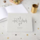 An elegant wedding guest book featuring a two tone soft gray monogram design, with ghosted initials gently placed behind the couple's names and accented by a refined botanical element. The names and accent are printed in rich gray, offering graceful contrast against an ivory faux linen background. Inside, the pages are lined for guests to leave messages, names, and well wishes. Minimalist and modern, this design blends quiet texture with subtle detail, creating a meaningful keepsake for your wedding day.