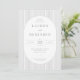 This elegant wedding invitation features a clean, minimalist design with vertical striped borders framing an oval-shaped central area. The color palette consists of soft gray tones that create a sophisticated and understated look, perfect for a formal event. Classic serif typography is used throughout, emphasizing the couple's names and event details in a timeless style. The layout is balanced and structured, ensuring clarity and readability while conveying a mood of elegance and simplicity. Ideal for couples seeking a refined and modern aesthetic for their special day.