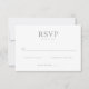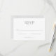 This elegant wedding RSVP card features a minimalist design with a clean white background, creating a sophisticated and modern look. The layout includes bold serif typography for the "RSVP" heading, complemented by simple sans-serif fonts for response options, ensuring clarity and readability. A delicate cursive script adds a touch of elegance, while radio button icons provide an intuitive way to respond. Perfect for couples seeking a chic and straightforward invitation solution, this card combines functionality with style, making it ideal for any formal event.