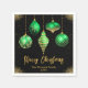 Add a touch of holiday glamour to your festive table with this green and gold Christmas napkin. Featuring five hanging ornaments - each with a unique design including glittering stars, snowflakes and florals - this layout blends classic with modern elegance. Set against a rich black background with golden sparkles, it's perfect for upscale gatherings, winter parties, or seasonal celebrations.