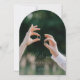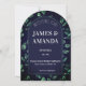 Elegant botanical wedding invitation featuring a modern arch frame surrounded by lush green watercolor leaves on a dark background. This minimalist yet romantic design is perfect for garden weddings, nature-inspired ceremonies, and sophisticated celebrations.
