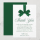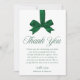 Express your thanks with this timeless thank you card featuring a green watercolor bow and ribbon at the top of the design. “Thank You” appears in refined green calligraphy, with room below for your custom message and name. Ideal for Christmas or holiday baby showers, this elegant design brings a warm, seasonal touch to your expressions of gratitude.