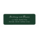 This elegant label features a minimalist design with a dark green background and white text, creating a sophisticated contrast. The layout is clean and balanced, with the names in an ornate script font at the top, followed by a straightforward serif font for the address details. Its formal style makes it perfect for official correspondence or special announcements, conveying a mood of elegance and simplicity through its restrained use of color and typography.