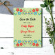 Denna inbjudan till bröllop spara datum i elegant är perfekt för en modern sommartid i blommigt bröllop. Den romantiska designen har blått och röd ros med elegantens svarta typografi på en grönts bakgrund.