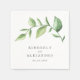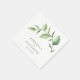 Rustic bröllop-blöjor med en enkel design med en grönt vattenfärg som målats med stor löv över en vit bakgrund. Nedan är namnen och datumet. En botanisk elegant som är underbar för ett firande under sommaren.