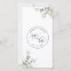 Bekvämt med den här eleganten Spara datumbokmärket. Utforma med den vackra frasen "Spara datumet" i modern handskriven kalligrafi. Ytlig, handmålad blommigt, grön, som binder dina detaljer med lövning i grönt, oliver, dammig blått och tealtoner. Det främsta centrala området i fodral är fritt att slå en helhet och försköna bokmärket med ett dekorativt band. Lägg till namn, datum, ställe och all annan extra-information som du vill ha. Tillbaka med blommigtens gröna logotyp som innesluter snyggten "nytt datum" med "spara datumfrasen" i modern kalligrafi, ditt datum och din brud och groom namn.