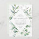 Den här eleganten är ett gigantiskt bröllopskort för diamanter är perfekt för ett enkelt bröllop. Den moderna elegantens utformning har en naturlig botanisk arrangemang av eukalyptus, löv och växter med en subtil myntfärgad vattenfärg i grönten tvättar accent.