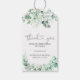 Elegant Greenery Eucalyptus Monogram Bröllop Tack Gift-Märkre. Med vattenfärgen eukalyptus löv, handskrivet tack och hjärta och monogram längst bak.