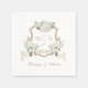Elegant Greenery White Blommigt Vapensköld Bröllop Pappersservett