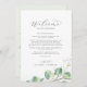 Dessa elegant gröna bröllop välkomnar brev och färdkort är perfekt för ett enkelt bröllop. Den moderna elegantens utformning har en naturlig botanisk arrangemang av eukalyptus, löv och växter med en subtil myntfärgad vattenfärg i grönten tvättar accent. På kortets framsida finns ett välkommet brev och på kortets baksida finns en rutt i bröllop. Dessa anteckningar är perfekt för destinationsbröllop och hotellgästväskor.