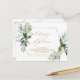 Måste du informera dina gäster i bröllop om att du måste ändra ditt stora datum? Använda det här elegantens vykort. Utformning av elegant-kort med modern faux-guld-kalligrafi, grönt-löv och faux-ram, på baksidan av en blekt bakgrund. Använda Anpassa verktyg om du vill lägga till din information. Om du vill ha matchande artiklar går du till Greenery Guld Collection.