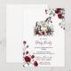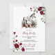 Host a sophisticated "Run for the Roses" celebration with this stunning Kentucky Derby party invitation featuring a beautiful watercolor-style grey horse surrounded by lush red roses and botanical greenery. The elegant script typography and vintage floral border create a refined, timeless look perfect for a classy derby day brunch or garden party.