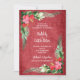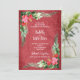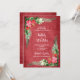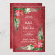 Vackra blommor och grönt på en texturerad bakgrund av kranberrytt med information från party i chic, vita bokstäver, dessa inbjudningar till julen är perfekt för er särskilda julfest.