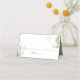 Botaniskt grönt bröllop-platskort med snyggt vit bakgrund, elegant vattenfärgsblad grönt, guld glitter accents, initialer, bröllop datum och en rad för att lägga till gäst namn och bordsnumret.