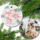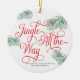 Elegant Grey Red Calligraphy jul Ceramic Ornament - Ge är en minnesvärd gåva med denna vackra, moderna och festliga julfotodekoration. Jingle All the way är inramad av lush, hand plockade Julgrey. Lägg till ett eget foto på baksidan.