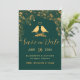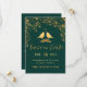 Meddela din bröllop med dessa eleganta smaragdgröna och gyllene save-the-date-kort. De har gyllene fåglar, gyllene blommor och modern typografi på smaragdgrön bakgrund. Lägg in ditt foto och er bröllopswebbplats på baksidan.