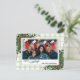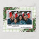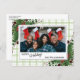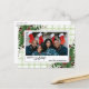 Unik, klassisk, trendig, snygg och dekorativ högtidskort. Glad helg hälsning text och utrymme att anpassa eller personifiera med ett foto, familjenamn (eller enskilda namn) och meddelande som du väljer. Inramad av vinrött röda bär och mörkgröna lövkransbuketter på en elegant grön och vit fransk lanterncheckad bakgrund.