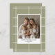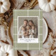 Fira årstiden av tacksamhet med detta Eleganta gröna rutmönstrade familjefoto tackkort för Thanksgiving. Med en mysig rutig bakgrund i mjuk grön färg och ett centralt utrymme för ditt familjefoto är denna tidlösa design perfekt för att skicka varma julhälsningar. Anpassa med ditt foto, familjenamn och år för att skapa ett hjärtligt minneskort för vänner och nära och kära. Ett klassiskt men modernt sätt att dela glädje och tacksamhet denna Thanksgiving.