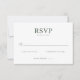 Detta RSVP-kort har en minimalistisk och elegant design med en ren vit bakgrund, accentuerad av en djupgrön färgpalett. Layouten inkluderar fet serif-typografi för rubriken "RSVP", kompletterad med enkla sans-serif-teckensnitt för tydlig läsbarhet. En utsmyckad kursiv bokstav lägger till en touch av sofistikering, medan kryssrutor ger ett interaktivt element för svar. Perfekt för formella evenemang, utstrålar detta kort en lugn och professionell ton, vilket gör det både praktiskt och visuellt tilltalande.