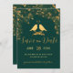 Meddela din bröllop med dessa eleganta smaragdgröna och gyllene save-the-date-kort. De har gyllene fåglar, gyllene blommor och modern typografi på smaragdgrön bakgrund. Lägg in ditt foto och din bröllopswebbplats på baksidan.