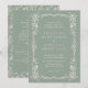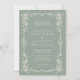 Ge din fest en tidlös sofistikation med denna vintage-klassiska bröllopsinbjudan i salvia grön med blommor, inspirerad av den viktorianska eran. Den intrikat vita blomlinjekonsten pryder dina bröllopsdetaljer på en mjuk salviagrön bakgrund. Inspirerad av viktoriansk romantik och vintage botaniska illustrationer, förenar denna design elegant tradition med modern enkelhet för en verkligt förfinad look.