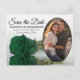 Dessa vackra vykort är ett underbart sätt att låta dina vänner och familj veta att de ska spara datumet för din kommande bröllop. De har en elegant, klassisk och romantisk design med en ensam långstjälkig smaragdgrön ros som speglas i en vattenpöl, och ditt foto i en oval ram. Texten lyder Spara datum med utrymme för era namn, datum och plats. Baksidan har en söt "boka oss" -grafik med utrymme för en kort anteckning och era signaturer.