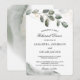 Fira kvällen före din stora dag i stil med denna eleganta akvarell grönsaklig övningsmiddagsinbjudan. Med handmålade eukalyptusblad och mjuka gulddetaljer är det den perfekta designen för en rustik, trädgård eller minimalistisk bröllopsfirande.