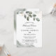 Fira kvällen före din stora dag med stil med denna eleganta akvarellgrönsaklighetsinbjudan till middag. Med handmålade eukalyptusblad och mjuka guldstoftdetaljer är det den perfekta designen för en rustik, trädgård eller minimalistisk bröllopsfirande.