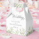 En elegant bröllopspresentlåda med ömtåliga vattenfärggröna blad som ramar in ditt tackmeddelande i modern typografi. Du kan anpassa med ditt eget tackmeddelande på baksidan. Ett perfekt sätt att tacka dina gäster! Designad av Thisisnotme©