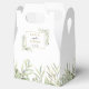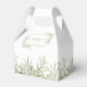 Elegant mjuk grönska blad bröllopsgåva låda med känsliga akvarellblad som ramar in era namn och speciella datum i modern typografi. Baksidan har ett tackmeddelande i guldskrift. Ett perfekt sätt att tacka era gäster! Designad av Thisisnotme©