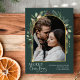 Denna design har en modern grönskande valv med en delikat glittrande guldram och guld penseldrag med ett vertikalt foto. För att göra avancerade ändringar, välj alternativet "Klicka för att anpassa ytterligare" under avsnittet "Anpassa denna mall". Här kan du redigera/tillämpa textrutor, färg och teckensnitt.