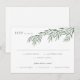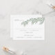 Elegant grönska löv bröllop rsvp bifogad kort design med klassisk typ handmålad akvarell gren med blad. Grönskan sveper över alla aspekter av detta kort och får det att kännas som om bladen och grenarna svajar i den milda brisen från vinden. Perfekt för utomhus- eller inomhusbröllop, informella eller formella evenemang. Klicka på redigeringsknappen för att anpassa denna design.