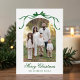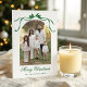 Skicka festive hälsning med det här eleganten julkort med en grönt och ett band med vattenfärg. Framsidan högdagrar ett favoritfoto i ett bågformat ram som är accentuerat av den handmålade bågen, medan baksidan innehåller en trefoto-kollage-layout för att visa fler helgdag. Anpassa med ditt namn och meddelande om du vill skapa ett tidslöst julkort som blandar klassiskt stil med ett modernt multifotoformat.