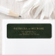 Bröllop par namn, enkel mörk med minimal elegant framträder grönt och bröllop returadressetikett för faux typography guld.