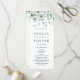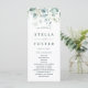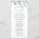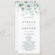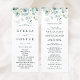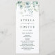 Det här ceremoniprogrammet i bröllop innehåller färgade vattenfärger, botaniska gröntar och ljusblå löv med modern kalligrafi.