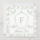 Elegant Grönt Chinoiserie Bird & Vapensköld Bröllo Tack Kort