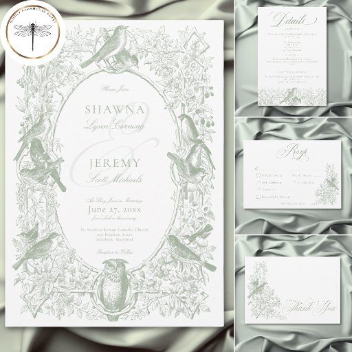 Elegant Green Chinoiserie Nature & Birds WeddingDesignad av Kathe Santillo