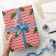 Elegant Grönt Falling Löv on Red Candy Rand Presentpapper