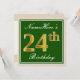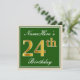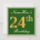 Elegant, Grönt, Faux Guld 24:e födelsedagen + Namn Inbjudningar