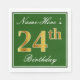 Den här enkla och elegant pappra napkin-designen innehåller ett meddelande som "Namn-här's 24:e födelsedag" (med "24:e" som har ett utseende som liknar guld) inom ett fyrkantigt område av grönt färgad med en enkel gräns-kontur. Namn är i en text som liknar en text med en vit färgad och kan vara personlig. Napkins som dessa skulle kanske kunna användas i en födelsedagsfest till någon som firar sin tjugofjärde födelsedag. [~Z0000137]