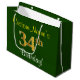 Den här enkla presentsäcksdesignen i eleganten innehåller ett personlig som "CustomName's 34 Birthday!" (med "34:e" som har ett utseende som påminner om guld) på gröntens färgad. Namn är i skriptliknande gult-färgad och kan vara personlig. En sådan här presentpåse för personligen skulle kanske kunna användas när en present eller gåva till någon som firar sin trettiofjärde födelsedag är ge. [~Z0000254]