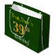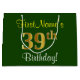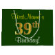 Den här enkla presentsäcksdesignen i eleganten innehåller ett personlig som "FirstName's 39 Birthday!" (med "39:e" som har ett utseende som påminner om guld) på gröntens färgad. Namn är i skriptliknande gult-färgad och kan anpassas. En sådan här personlig-födelsedagspressning skulle kanske kunna användas när en present eller gåva till någon som firar sin trettionionde födelsedag är ge. [~Z0000254]
