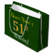 Den här enkla presentsäcksdesignen i eleganten innehåller ett personlig som "Namn-här's 51:a födelsedag!" (med "51:a" som har ett utseende som påminner om guld och utseende) på gröntens färgad. Namn är i skriptliknande gult-färgad och kan anpassas. En sådan här personlig-födelsedagspressning skulle kanske kunna användas när en present eller gåva till någon som firar sin femtioförsta födelsedag är ge. [~Z0000254]