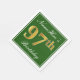 Den här enkla och elegant pappra napkin-designen innehåller ett meddelande som "Namehär's 97:e födelsedagen" (med "97:e" som har en ytliknande guld-färg) i en kvadratisk grönt-färgad med en enkel gräns-kontur. Namn är i en text som liknar en text med en vit färgad och kan vara personlig. Napkins som dessa skulle kanske kunna användas i en födelsedagsfest till någon som firar sin nittiosjunde födelsedag. [~Z0000137]