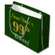 Den här enkla presentsäcksdesignen i eleganten innehåller ett personlig som "Namehär's 99 Birthday!" (med "99:e" som har ett utseende som liknar guld-utseende i utseende) på gröntens färgad. Namn är i skriptliknande gult-färgad och kan vara personlig. En sådan här personlig-födelsedagspressepåse skulle kanske kunna användas när en present eller gåva till någon som firar sin nittionionde födelsedag är ge. [~Z0000254]