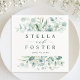 Den här bröllop-napkin har färgade eucalyptus, botaniska gröntar och ljusblå löv.